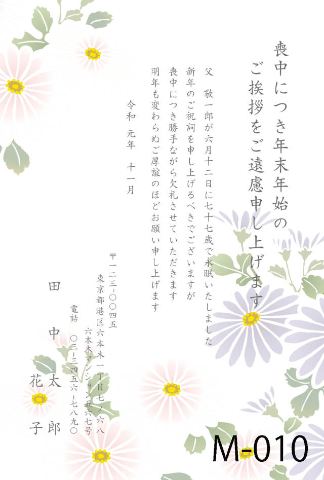 喪中はがきデザイン選択ご注文枚数カート(郵便はがき85円+印刷35円)